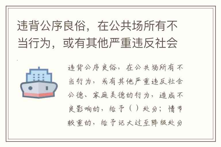 根据《中华人民共和国公职人员政务处分法》第四十条规定,公职人员违背社会公序良俗、在公共场所有不当行为或严重违反社会公德、家庭美德并造成不良影响的,给予警告、记过或记大过处分;情节较重的给予降级或撤职处分;情节严重的予以开除。这一规定将基本道德规范转化为法律约束,体现了对公职人员行为的严格要求。