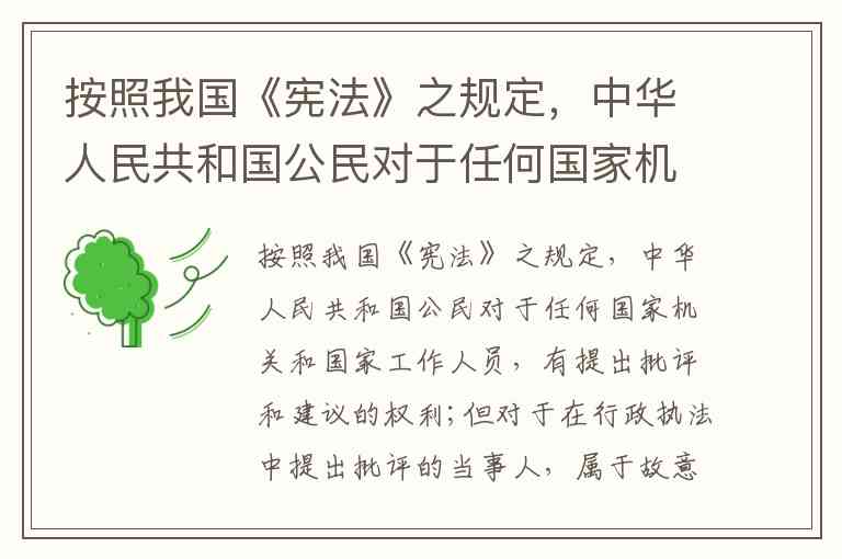 题目中的表述存在严重错误。根据《宪法》第四十一条,中华人民共和国公民对于任何国家机关和国家工作人员,有提出批评和建议的权利;对于任何国家机关和国家工作人员的违法失职行为,有向有关国家机关提出申诉、控告或者检举的权利,但是不得捏造或者歪曲事实进行诬告陷害。对于公民的申诉、控告或者检举,有关国家机关必须查清事实,负责处理。任何人不得压制和打击报复。由于国家机关和国家工作人员侵犯公民权利而受到损失的人,有依照法律规定取得赔偿的权利。