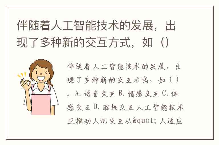 伴随着人工智能技术的发展,出现了多种新的交互方式,如()。A.语音交互 B.情感交互 C.体感交互 D.脑机交互