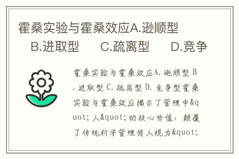 霍桑实验与霍桑效应A.逊顺型 B.进取型 C.疏离型 D.竞争型