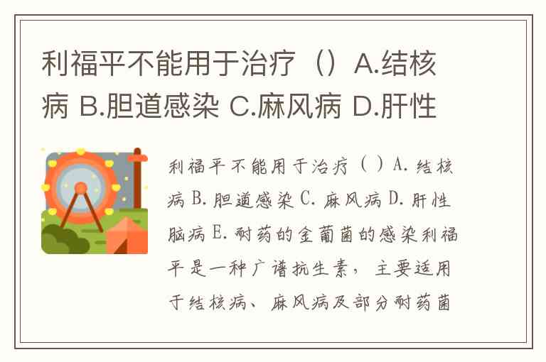 综上,利福平的临床应用需紧扣抗菌谱与适应症,肝性脑病作为非感染性疾病,显然不在其治疗范围内。这一选择也提示:抗生素的使用应基于病原学诊断,而非对症用药。