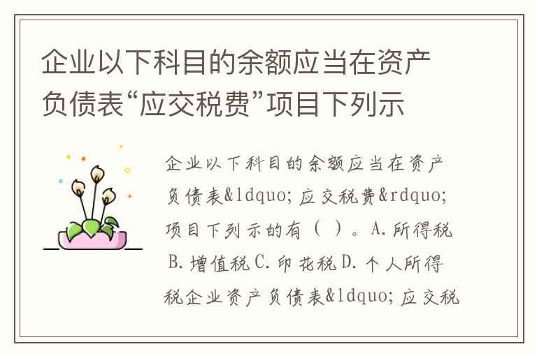 企业以下科目的余额应当在资产负债表“应交税费”项目下列示的有( )。A.所得税 B.增值税 C.印花税 D.个人所得税