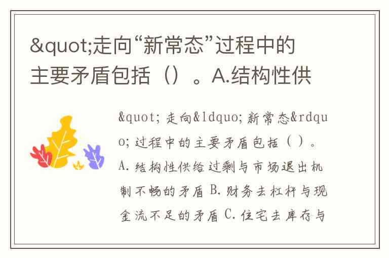"走向“新常态”过程中的主要矛盾包括()。A.结构性供给过剩与市场退出机制不畅的矛盾 B.财务去杠杆与现金流不足的矛盾 C.住宅去库存与居民需求不足的矛盾 D.公共服务均等化与财政收入增速放慢的矛盾