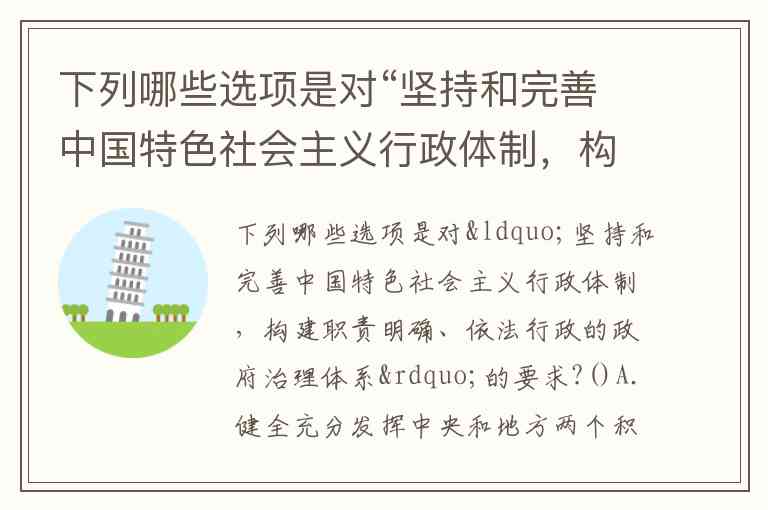 下列哪些选项是对“坚持和完善中国特色社会主义行政体制,构建职责明确、依法行政的政府治理体系”的要求?()A.健全充分发挥中央和地方两个积极性体制机制 B.完善国家行政体制 C.优化政府职责体系 D.优化政府组织结构