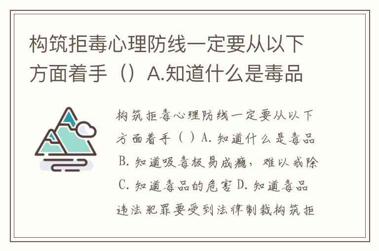 构筑拒毒心理防线一定要从以下方面着手()A.知道什么是毒品 B.知道吸毒极易成瘾,难以戒除 C.知道毒品的危害 D.知道毒品违法犯罪要受到法律制裁