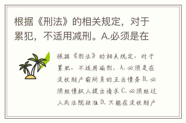 根据《刑法》的相关规定,对于累犯,不适用减刑。A.必须是在没收财产前所负的正当债务 B.必须经债权人提出请求 C.必须经过人民法院核准 D.只能在没收财产的数额内偿还
