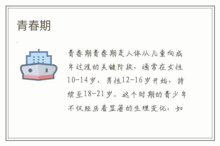 青春期是人体从儿童向成年过渡的关键阶段,通常在女性10-14岁、男性12-16岁开始,持续至18-21岁。这个时期的青少年不仅经历着显著的生理变化,如身高增长、性征发育和激素水平波动,还伴随着自我意识觉醒、情绪管理挑战和社交关系重构等心理转变。这些变化的背后是大脑发育的不平衡——负责情绪冲动的杏仁核与调控理性的前额叶皮质发展不同步,导致青少年常表现出"理智与情感的拉锯战"。