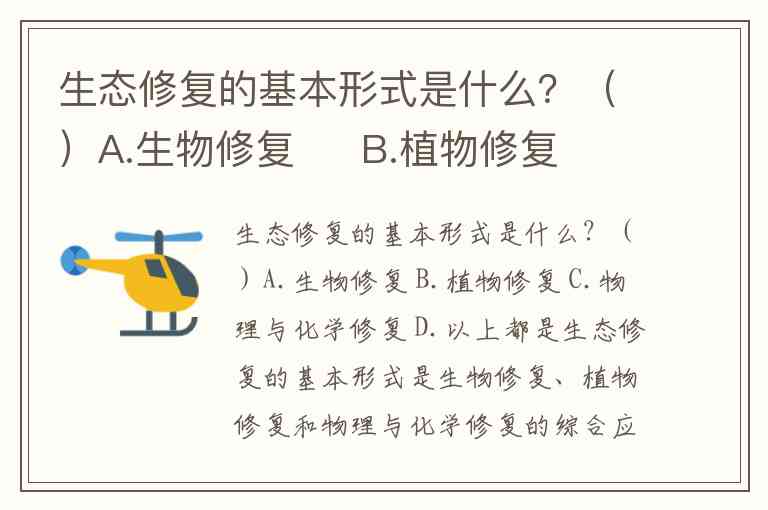 生态修复的基本形式是什么?()A.生物修复 B.植物修复 C.物理与化学修复 D.以上都是