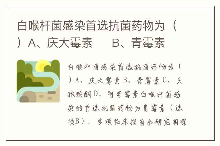 白喉杆菌感染首选抗菌药物为()A、庆大霉素 B、青霉素 C、头孢哌酮 D、阿奇霉素