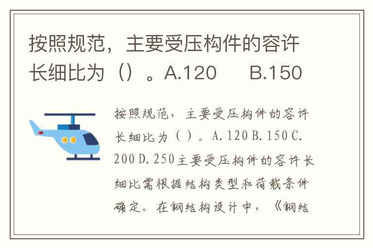 按照规范,主要受压构件的容许长细比为()。A.120 B.150 C.200 D.250