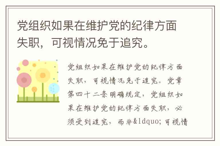 党组织如果在维护党的纪律方面失职,可视情况免于追究。