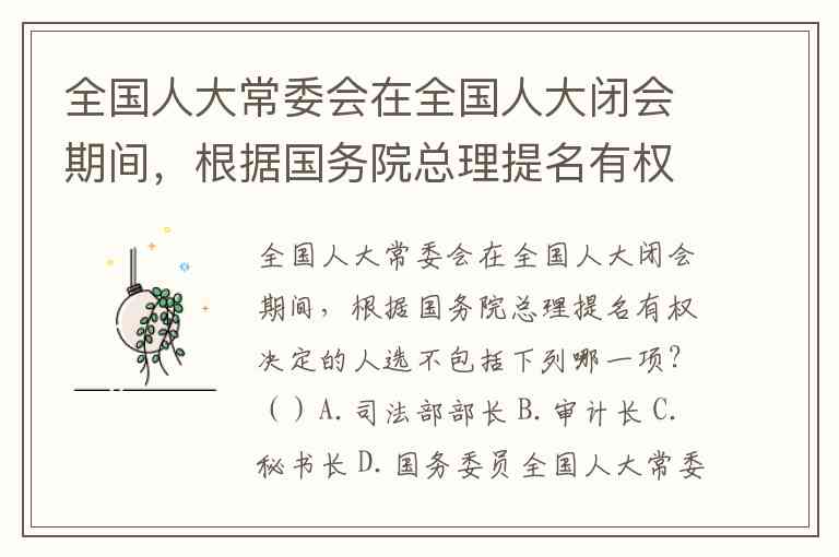 全国人大常委会在全国人大闭会期间,根据国务院总理提名有权决定的人选不包括下列哪一项?()A.司法部部长 B.审计长 C.秘书长 D.国务委员