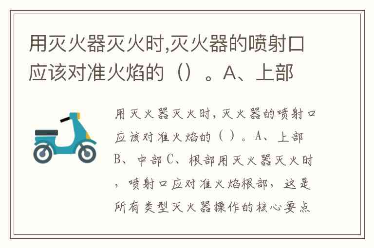 用灭火器灭火时,灭火器的喷射口应该对准火焰的()。A、上部 B、中部 C、根部