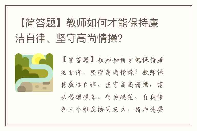 【简答题】教师如何才能保持廉洁自律、坚守高尚情操?