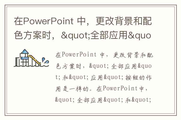 在PowerPoint 中,更改背景和配色方案时,"全部应用"和"应用"按钮的作用是一样的。