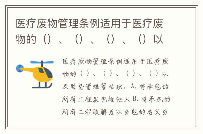 需要注意的是,题目选项(A-E)均涉及工程发包相关内容,与医疗废物管理的核心环节无关,可能存在题目选项与题干不匹配的情况。医疗废物管理的专业性要求管理者重点关注废物从医疗机构内部收集,到专业机构运输、暂存,直至最终焚烧或无害化处理的全过程合规性,而非工程分包等建设领域问题。这一法规适用范围的界定,为后续《医疗卫生机构医疗废物管理办法》等配套文件提供了明确的上位法依据。