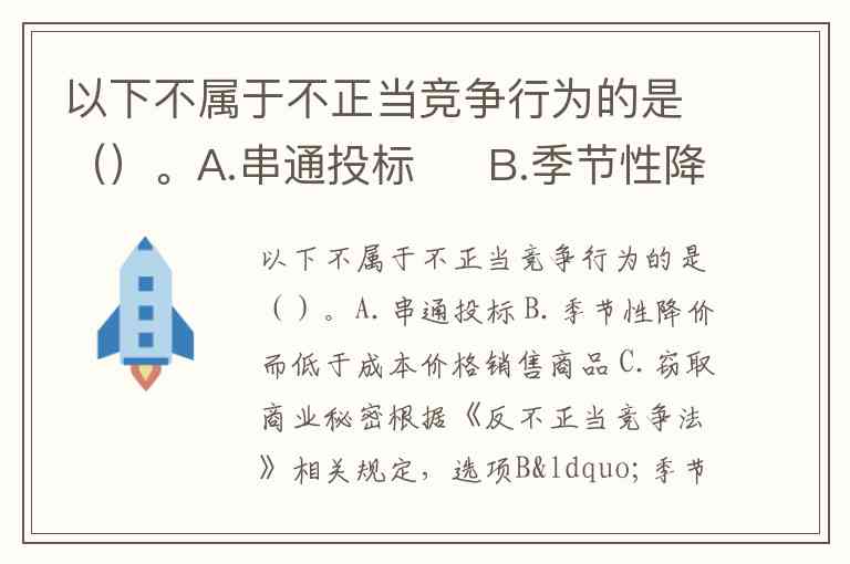 以下不属于不正当竞争行为的是()。A.串通投标 B.季节性降价而低于成本价格销售商品 C.窃取商业秘密