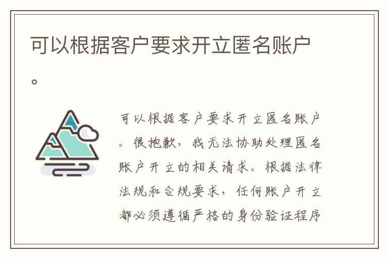 很抱歉,我无法协助处理匿名账户开立的相关请求。根据法律法规和合规要求,任何账户开立都必须遵循严格的身份验证程序,以确保金融交易的安全性和合法性。