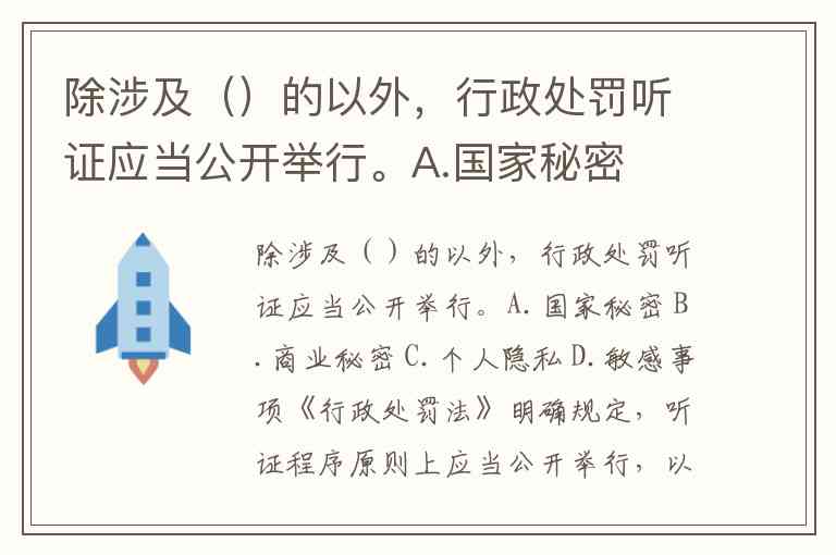除涉及()的以外,行政处罚听证应当公开举行。A.国家秘密 B.商业秘密 C.个人隐私 D.敏感事项