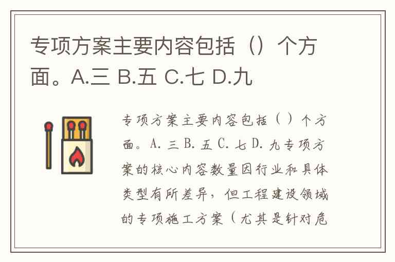 专项方案主要内容包括()个方面。A.三 B.五 C.七 D.九