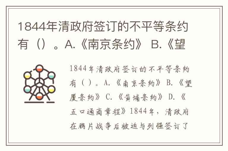 1844年清政府签订的不平等条约有()。A.《南京条约》 B.《望厦条约》 C.《黄埔条约》 D.《五口通商章程》