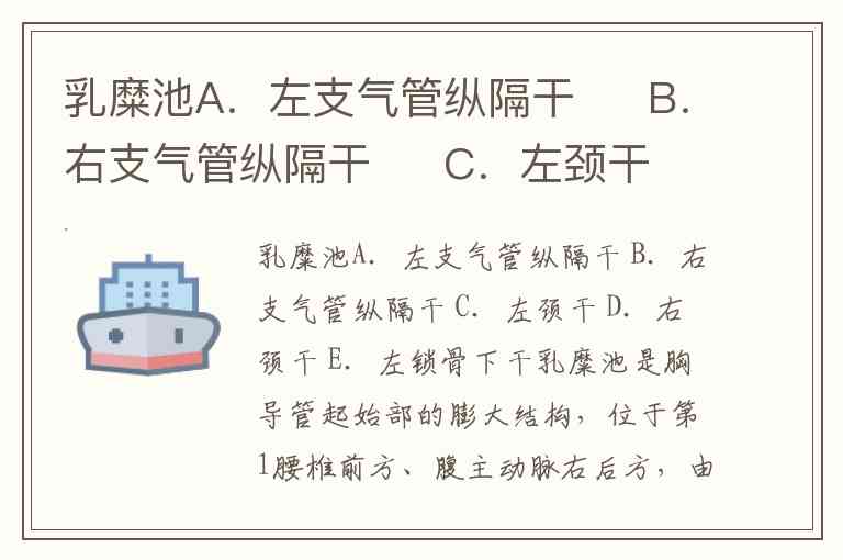 值得注意的是,题目选项中的左颈干(C)、左锁骨下干(E)、左支气管纵隔干(A)虽最终汇入胸导管,但它们是在胸导管上行至颈根部时才加入,并非直接注入乳糜池。而右颈干(D)、右支气管纵隔干(B)则属于右淋巴导管系统,注入右静脉角,与乳糜池无关。
