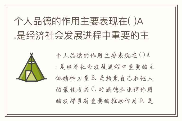个人品德的作用主要表现在( )A.是经济社会发展进程中重要的主体精神力量 B.是约束自己和他人的最佳方式 C.对道德和法律作用的发挥具有重要的推动作用 D.是个体人格完善的重要标志