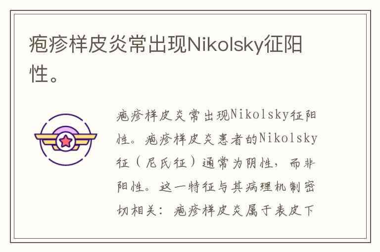 尼氏征阳性主要见于天疱疮等存在棘层松解的疾病,表现为推压水疱时疱壁移动、正常皮肤摩擦后表皮剥离等现象。而疱疹样皮炎的诊断需结合典型皮损(如四肢伸侧、肩胛部的集群水疱)、剧烈瘙痒、组织病理显示表皮下水疱及真皮乳头层IgA沉积等特征。若临床误判尼氏征结果,可能导致与天疱疮或大疱性类天疱疮的混淆,延误治疗方向。