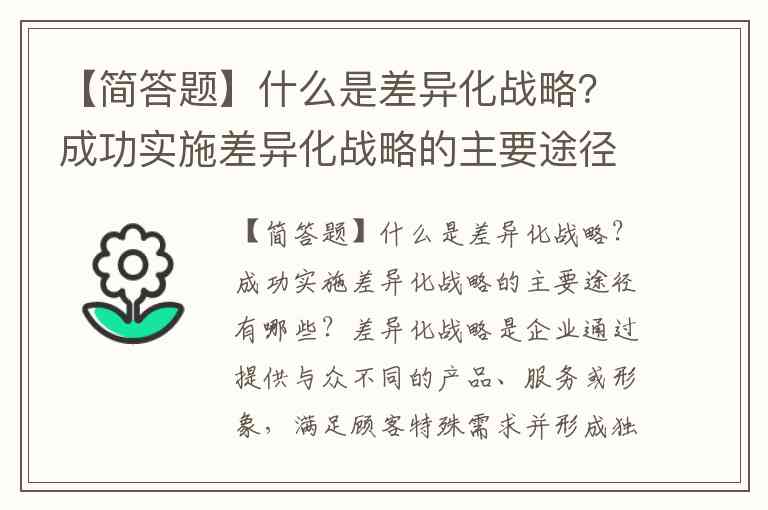 【简答题】什么是差异化战略?成功实施差异化战略的主要途径有哪些?