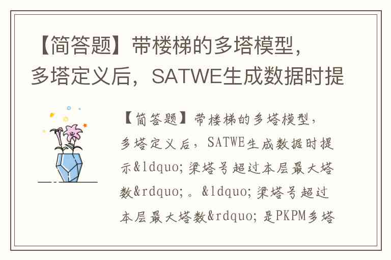 【简答题】带楼梯的多塔模型,多塔定义后,SATWE生成数据时提示“梁塔号超过本层最大塔数”。