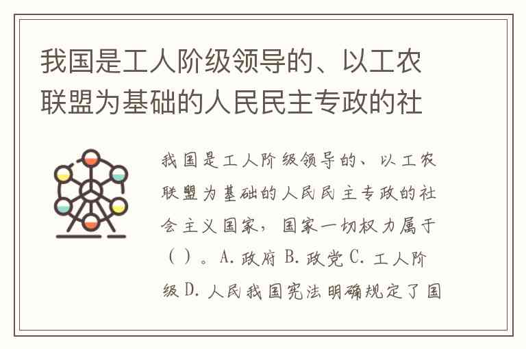 我国是工人阶级领导的、以工农联盟为基础的人民民主专政的社会主义国家,国家一切权力属于()。A.政府 B.政党 C.工人阶级 D.人民