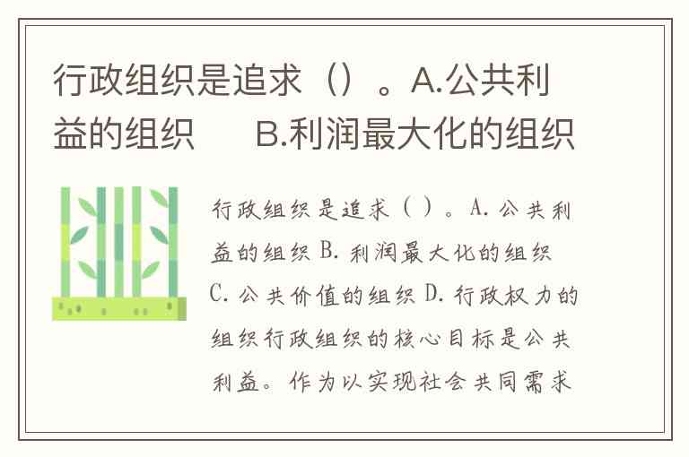 行政组织是追求()。A.公共利益的组织 B.利润最大化的组织 C.公共价值的组织 D.行政权力的组织