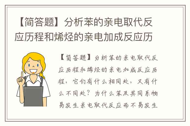 【简答题】分析苯的亲电取代反应历程和烯烃的亲电加成反应历程,它们有什么相同处,又有什么不同处?为什么苯及其同系物易发生亲电取代反应而不易发生亲电加成反应?