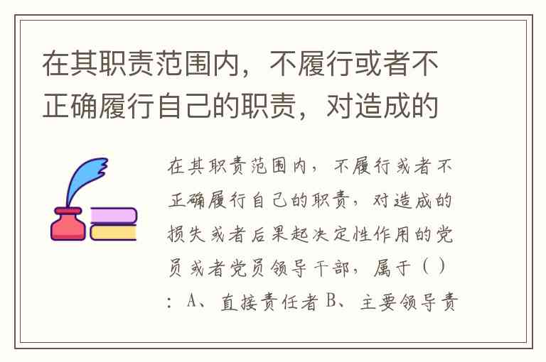 在其职责范围内,不履行或者不正确履行自己的职责,对造成的损失或者后果起决定性作用的党员或者党员领导干部,属于():A、直接责任者 B、主要领导责任者 C、重要领导责任者