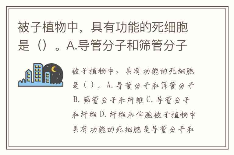 被子植物中,具有功能的死细胞是()。A.导管分子和筛管分子 B.筛管分子和纤维 C.导管分子和纤维 D.纤维和伴胞