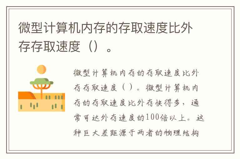 微型计算机内存的存取速度比外存快得多,通常可达外存速度的100倍以上。这种巨大差距源于两者的物理结构和工作方式:内存采用DRAM或SRAM等高速半导体材料,直接与CPU通过数据总线连接,能在纳秒级时间内完成数据读写;而外存如硬盘、U盘等依赖机械部件(如硬盘磁头)或接口限制,需在微秒甚至毫秒级时间内完成操作。