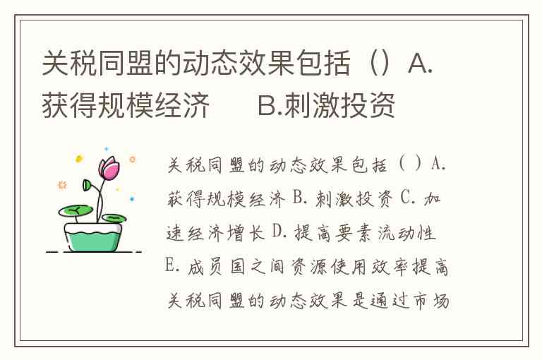 关税同盟的动态效果包括()A.获得规模经济 B.刺激投资 C.加速经济增长 D.提高要素流动性 E.成员国之间资源使用效率提高