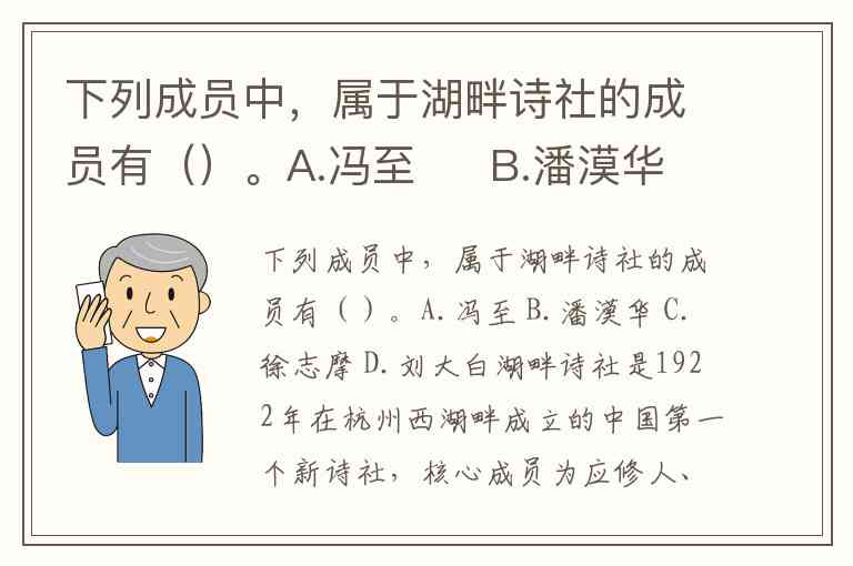 下列成员中,属于湖畔诗社的成员有()。A.冯至 B.潘漠华 C.徐志摩 D.刘大白