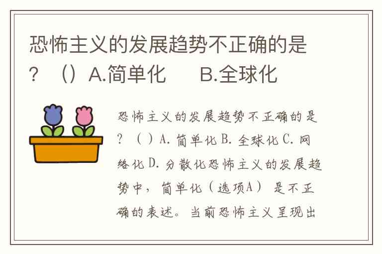 恐怖主义的发展趋势中,简单化(选项A) 是不正确的表述。当前恐怖主义呈现出全球化、网络化、分散化等复杂特征,与“简单化”趋势完全相悖。
