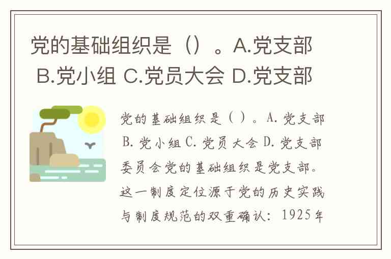 党的基础组织是()。A.党支部 B.党小组 C.党员大会 D.党支部委员会