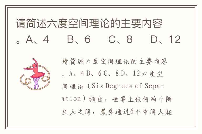 请简述六度空间理论的主要内容。A、4 B、6 C、8 D、12