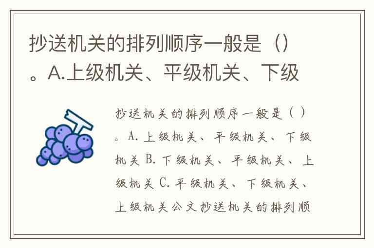 抄送机关的排列顺序一般是()。A.上级机关、平级机关、下级机关 B.下级机关、平级机关、上级机关 C.平级机关、下级机关、上级机关