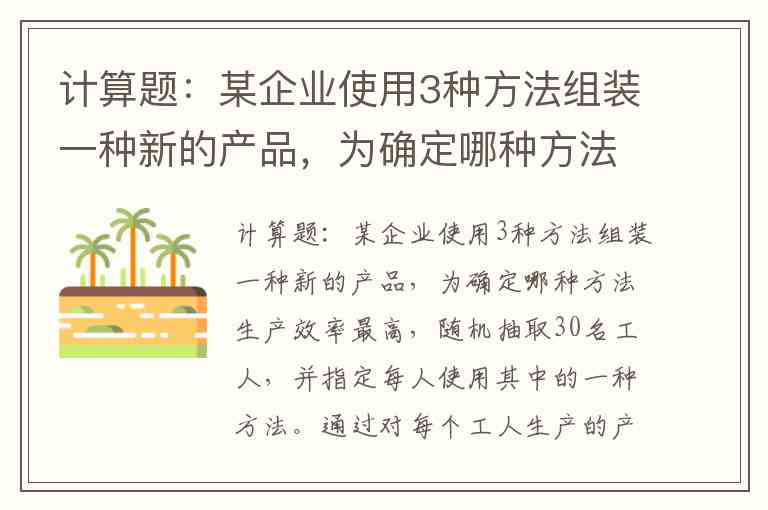 例如,某企业使用3种方法组装产品,30名工人,得到方差分析表如下(部分数据缺失),请补充完整: