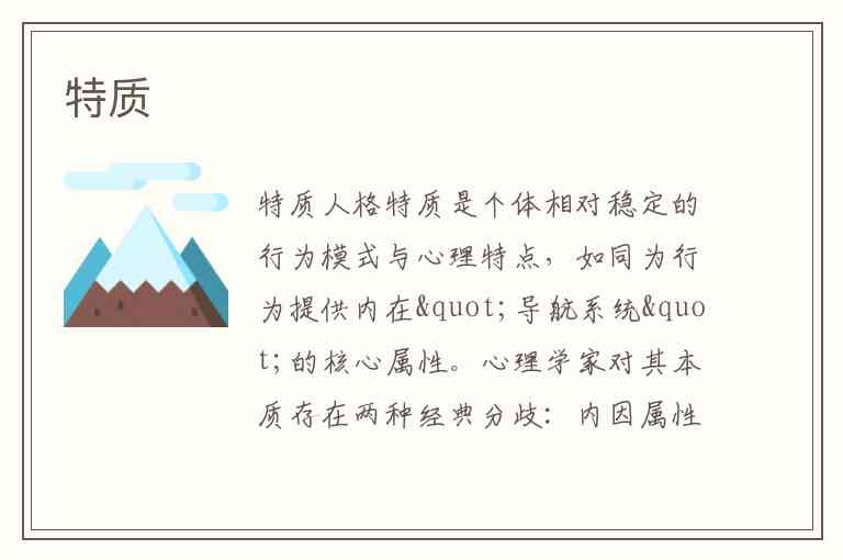 人格特质是个体相对稳定的行为模式与心理特点,如同为行为提供内在"导航系统"的核心属性。心理学家对其本质存在两种经典分歧:内因属性观视特质为驱动行为的内在动力(如欲望、动机),即便缺乏外显行为也依然存在,例如一个内向者即便参加聚会,其"内向"特质依然存在;而描述概括观则将特质视为对行为模式的统计性总结,不预设因果关系,如"乔治的嫉妒"仅描述其监视伴侣等具体行为总和。这种"主内主外"的差异,构成了特质理论的底层逻辑分野。