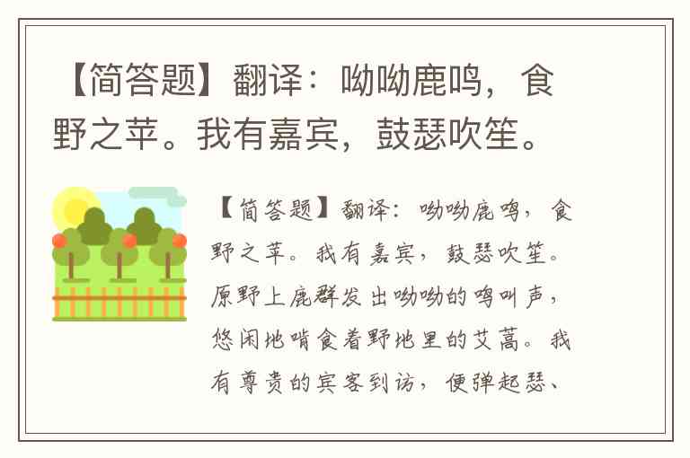 【简答题】翻译:呦呦鹿鸣,食野之苹。我有嘉宾,鼓瑟吹笙。