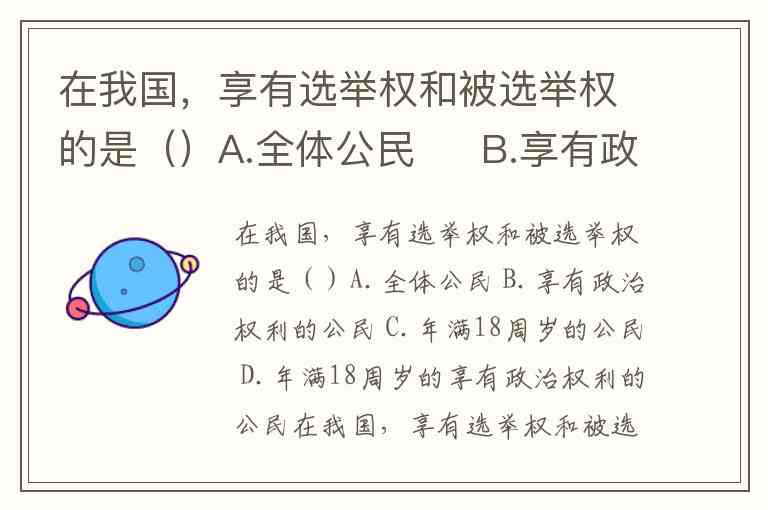 在我国,享有选举权和被选举权的是()A.全体公民 B.享有政治权利的公民 C.年满18周岁的公民 D.年满18周岁的享有政治权利的公民