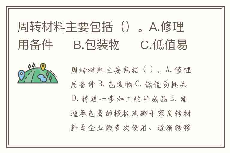 结论:正确答案为 B、C、E。这些项目均满足“多次使用+价值渐转+非固定资产”的核心条件,而修理用备件和半成品则分别归属于原材料和在产品,不属于周转材料范畴。