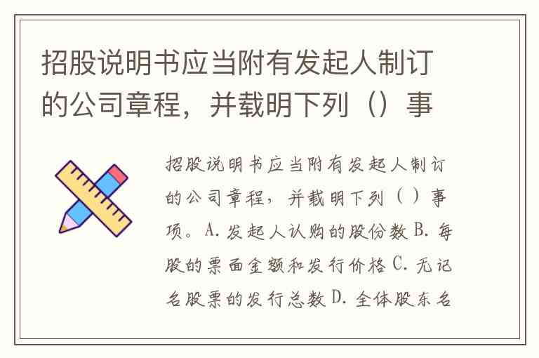 招股说明书应当附有发起人制订的公司章程,并载明下列()事项。A.发起人认购的股份数 B.每股的票面金额和发行价格 C.无记名股票的发行总数 D.全体股东名单