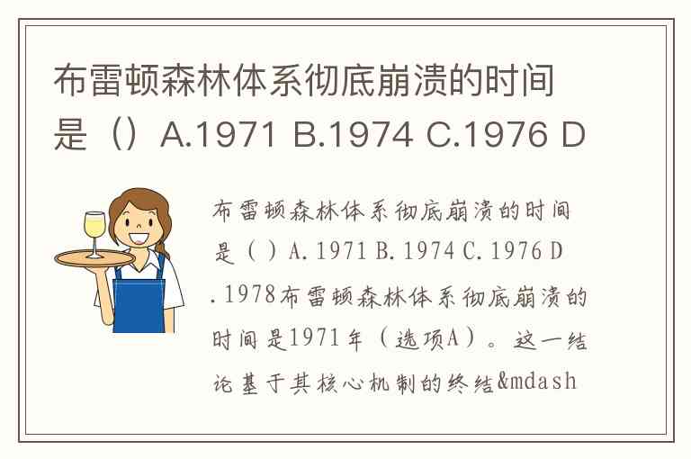 布雷顿森林体系彻底崩溃的时间是()A.1971 B.1974 C.1976 D.1978
