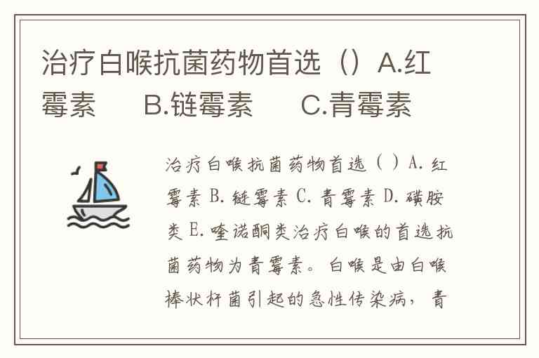 治疗白喉抗菌药物首选()A.红霉素 B.链霉素 C.青霉素 D.磺胺类 E.喹诺酮类